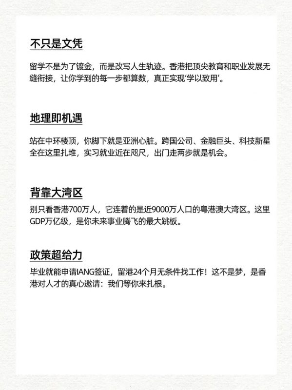 香港政府热烈欢迎全球人才。毕业生可通过 IANG签证,无条件留港24个月寻找理想工作! The Hong Kong government warmly welcomes global talent. Graduates can stay unconditionally for 12 months to seek ideal employment through the IANG Visa!